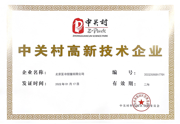 亞冷中關(guān)村 高新技術(shù)企業(yè)