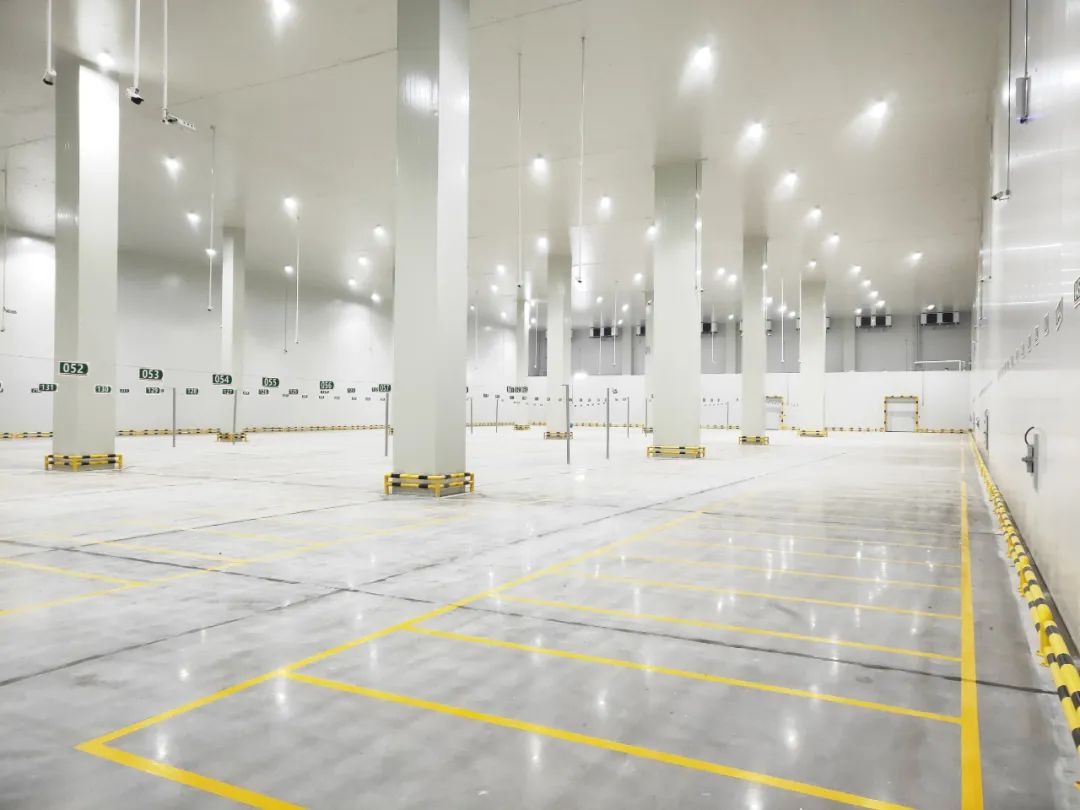 用冷風(fēng)機(jī)降溫,溫度可達(dá)1℃~10℃,并設(shè)有滑開式冷藏門,軟性密封接頭,冷藏車可直接靠到月臺上,實(shí)行門對門的裝卸,作業(yè),使進(jìn)出庫基本不受外界溫度的影響。小型冷庫可在進(jìn)門處建造門斗。 早期單扇速度為0.3~0.6m/s,目前高速電動冷藏門開啟速度達(dá)到了1m/s,雙扇冷藏門開啟速度達(dá)到2m/s。為避免危險,關(guān)閉速度控制在開啟速度的一半左右。門前裝有傳感式自動開關(guān)。這些裝置都是旨在縮短開關(guān)門時間,提高裝卸效率,減少操作人員停留時間。 采用發(fā)熱量小,功率小,亮度高的高效燈具,如鈉燈。高壓鈉燈效率是普通白熾燈的10倍,而能耗僅為低效燈具的1/10。目前在一些比較先進(jìn)的冷庫中使用新型LED作為照明,發(fā)熱量和能耗更小。